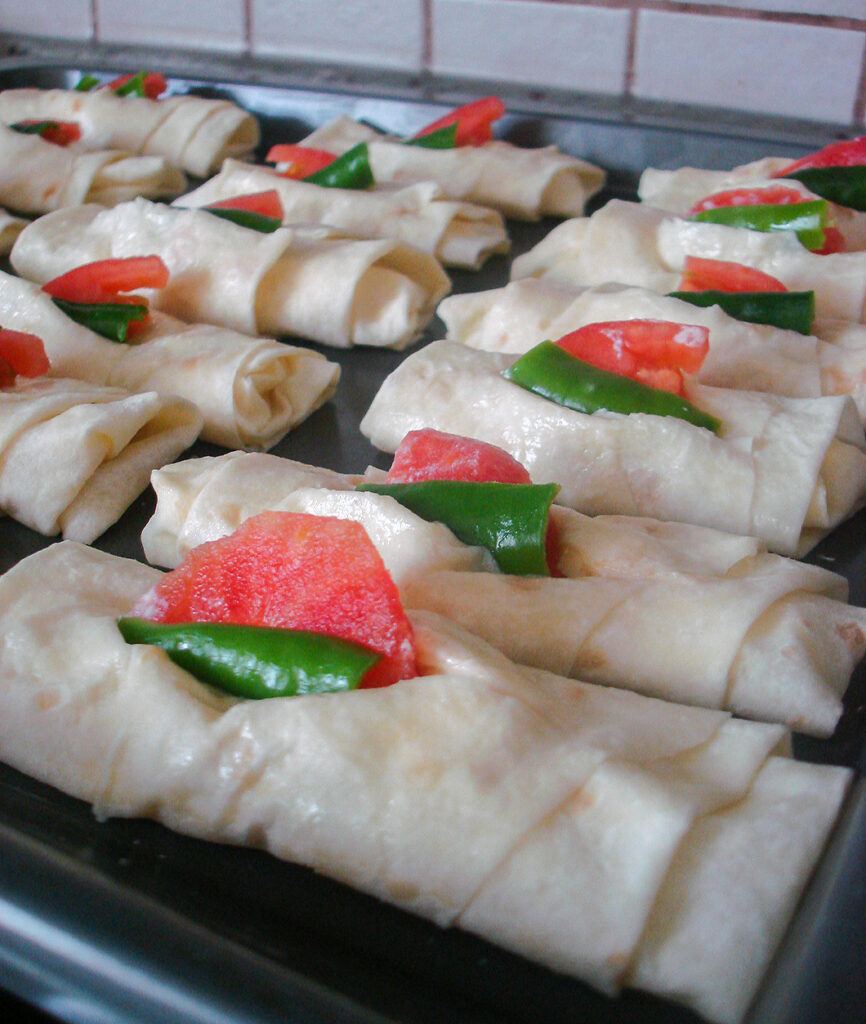 Bildiğimiz klasik malzemelerle yapılan bir peynirli böreği domates ve biberle süsleyerek çok harika börekler pişirebilirsiniz.